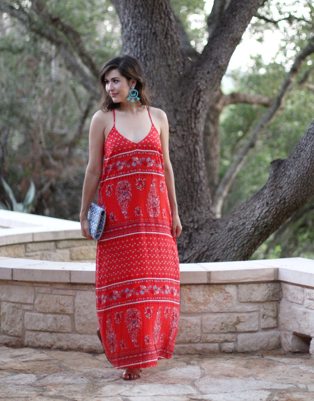 On Saturday, we lounged around the house and ate breakfast then floated the Frio River that afternoon; it was the perfect day too float- not too hot, but plenty of sunshine! I wore this red maxi dress on Saturday night when we went out to hear some country music and it was so comfortable and easy! I was surprised to find it at Old Navy, but so happy that I snatched it on a whim without even trying it on.